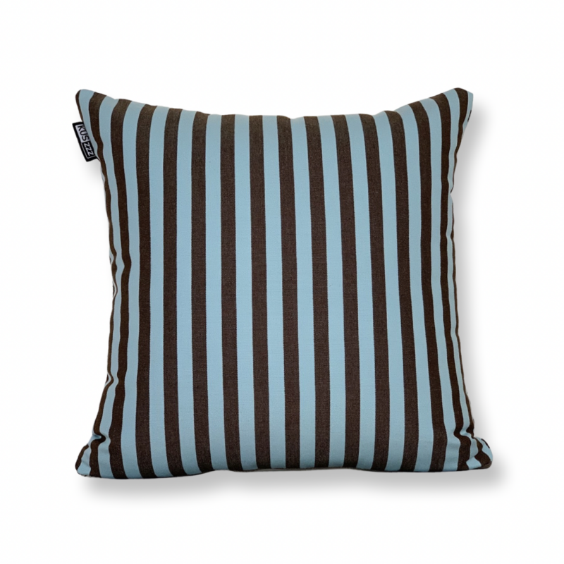 Gestreept sierkussen van 40x40cm. Geschikt voor buitengebruik. De binnenhoes is gevuld met wattine.