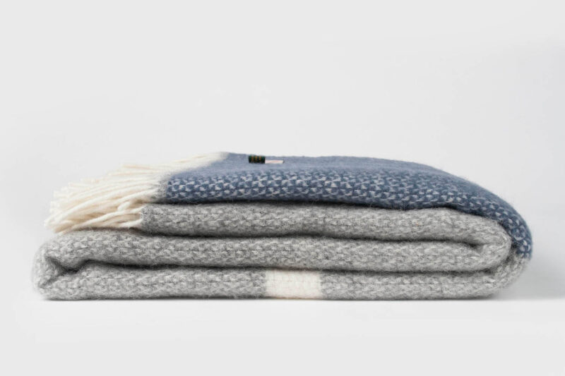 Wollen Plaid – Panelen – Grijs Donkerblauw
